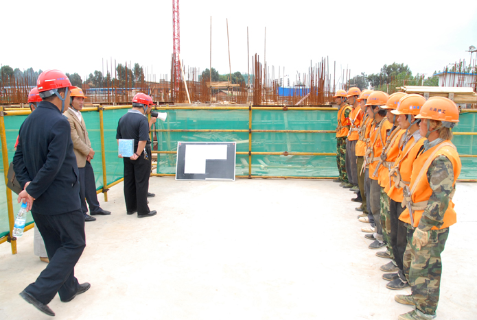 技術支持: 方森科技 2010年8月25日上午,集團公司在五公司第一直管部承建的第三城•丹槿園施工現場召開施工現場班組安全建設啟動儀式現場會。昆明市建筑安全監(jiān)督管理站站長梁少軍,集團公司副總經理楊濤、安全總監(jiān)段益慶、生產安全處主任蘇雄斌,五公司董事長、黨委書記楊福和出席會議。會議由段益慶主持。