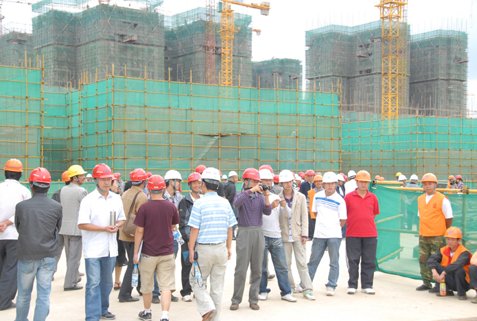 會后,所有參會人員參觀了五公司第三城•丹槿園項目現場安全、文明施工管理和班組班前活動。