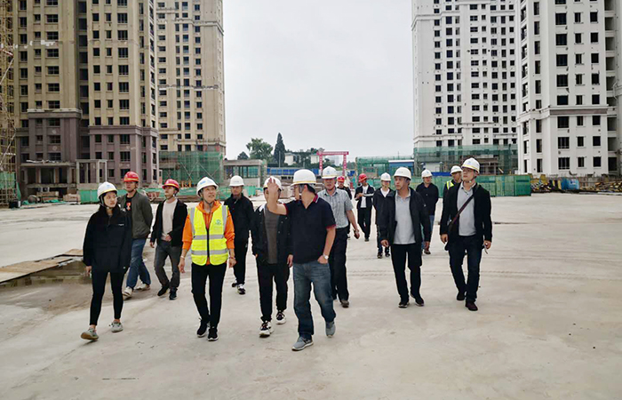 項(xiàng)目總承包單位質(zhì)量總監(jiān)對(duì)本次參觀活動(dòng)作具體安排,首先向觀摩人員介紹了項(xiàng)目的建設(shè)概況、組合鋁合金模板的應(yīng)用、BIM三維場(chǎng)布技術(shù)的應(yīng)用、附著式整體提升腳手架的應(yīng)用情況以及QC質(zhì)量管理成果和施工工藝中的亮點(diǎn)。