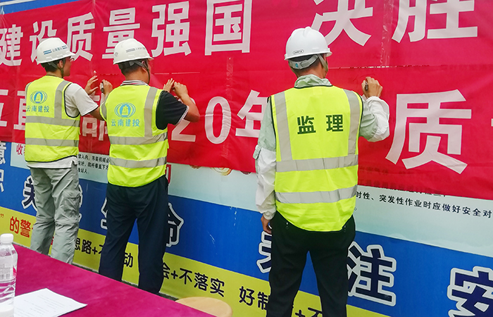 9月12日,第五直管部開展以“建設質量強國,決勝全面小康”為主題的2020年質量月活動啟動儀式,該啟動儀式分兩個會場,一是以曲靖棚改、曲靖中安監(jiān)獄、第四監(jiān)獄為一組的曲靖片區(qū)項目,二是以巧家邱家?guī)Z項目為主的昭通片區(qū)項目。