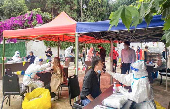 5月25日上午,公司聯(lián)合眠山社區(qū)開展“我為群眾辦實事?職工免費核酸檢測”活動,在公司本部職工活動區(qū)域設(shè)立一場為職工及家屬上門免費核酸檢測專場,助力昆明市疫情防控工作開展。2個半小時的時間里,共有公司職工及家屬區(qū)744人參加核酸檢測。核酸檢測現(xiàn)場,一道道身影來回奔波,清晰可見,志愿者們?nèi)ε浜厢t(yī)護人員做好查驗健康碼和行程碼,協(xié)助核酸檢測人員信息登記,維持檢測隊伍秩序?!澳銈冞@是在干嗎?”“您好,我們…