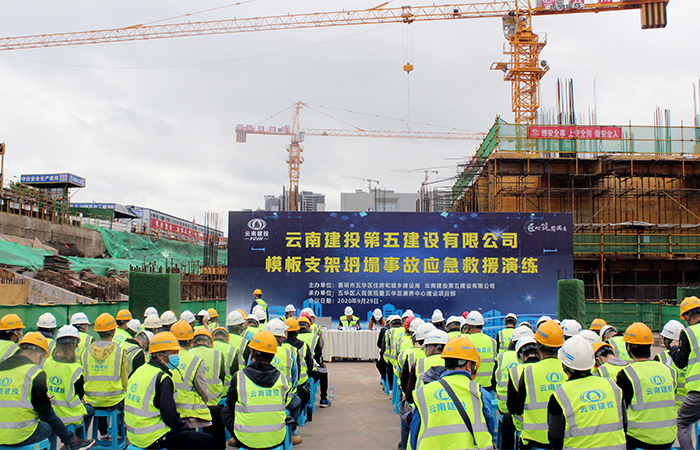 為了進(jìn)一步完善一線項(xiàng)目部的應(yīng)急機(jī)制,檢查應(yīng)對突發(fā)事件所需應(yīng)急隊(duì)伍、物資、裝備、技術(shù)等方面的準(zhǔn)備情況,檢驗(yàn)和完善應(yīng)急預(yù)案的實(shí)用性和可操作性,提高一線項(xiàng)目人員的應(yīng)急處置能力,公司于9月29日早上9時(shí)在五華醫(yī)院項(xiàng)目部組織開展第三季度模板支架坍塌事故應(yīng)急演練。 此次演練現(xiàn)場模擬了項(xiàng)目施工...