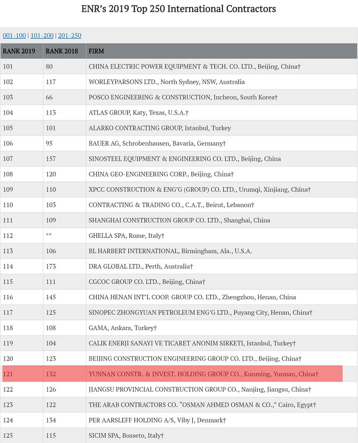 近日,2019年度美國《工程新聞紀(jì)錄(ENR)》“全球最大250家國際承包商”榜單發(fā)布,集團(tuán)再次入圍,名列121位,比上年提升11位,位列進(jìn)入榜單的中國企業(yè)第35名。至此,集團(tuán)已連續(xù)10年入選ENR國際承包商250強(qiáng)企業(yè)。 近年來,集團(tuán)積極響應(yīng)“一帶一路”倡議,積極投身云南省建設(shè)面向南亞東南亞輻射中心戰(zhàn)略布局,“勤修內(nèi)功”全面打造包括海外投資和新興產(chǎn)業(yè)投資在內(nèi)的“…