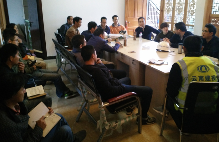 4月7日,公司黨委書記、董事長李興奎,黨委副書記榮凱,工會主席、副總經理史呈森,總經理助理趙麟一行到怒江州職教中心項目進行調研。 李興奎一行檢查了施工壓力較大、工期較緊的江堤、教師周轉用房、室外配套工程等部分項目,詢問了項目施工進度、勞動力組織和材料供應等情況,并與集團怒江州職教中心項目建設指揮部負責人交流了項目的難點及重...