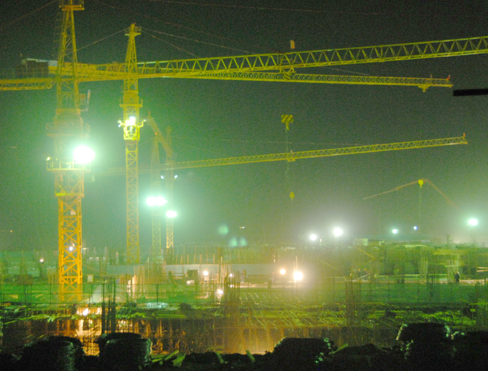 11月27日晚上,當別人歡度周末之時,云南五建昆明新機場項目部員工仍在緊張施工,進行B3頂板及梁體混凝土澆筑。 高玉和 攝影報道