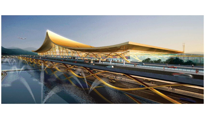 五建公司中標(biāo)昆明新機(jī)場(chǎng)A-3合同段工程 機(jī)場(chǎng)航站樓前停車(chē)樓及站前高架橋位置圖 機(jī)場(chǎng)航站樓前停車(chē)樓及站前高架橋示意圖 站前停車(chē)樓建成后位置 航站樓前高架橋局部效果圖 陽(yáng)春三月傳佳音——云南建工第五建設(shè)...