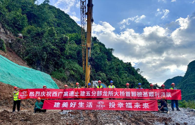 西廣高速公路項(xiàng)目土建五分部龍所大橋首顆樁基順利完成澆筑