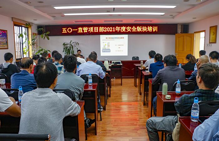 8月14日,五〇一直管部在直管部三樓會議室組織開展2021年度安全版塊業(yè)務培訓,直管部領(lǐng)導班子、科室負責人、項目經(jīng)理、安全員和技術(shù)人員共計40人到現(xiàn)場參加培訓。疫情防控階段,為控制人員大規(guī)模集中,直管部還通過線上釘釘直播的方式使更多的一線人員參與培訓。本次培訓圍繞施工現(xiàn)場安全事故案例、大機設備管理、施工現(xiàn)場臨時用電管理及施工現(xiàn)場安全檢查要點等方面開講。黨支部書記王敏以一個真實的觸電事故視頻案例為引…