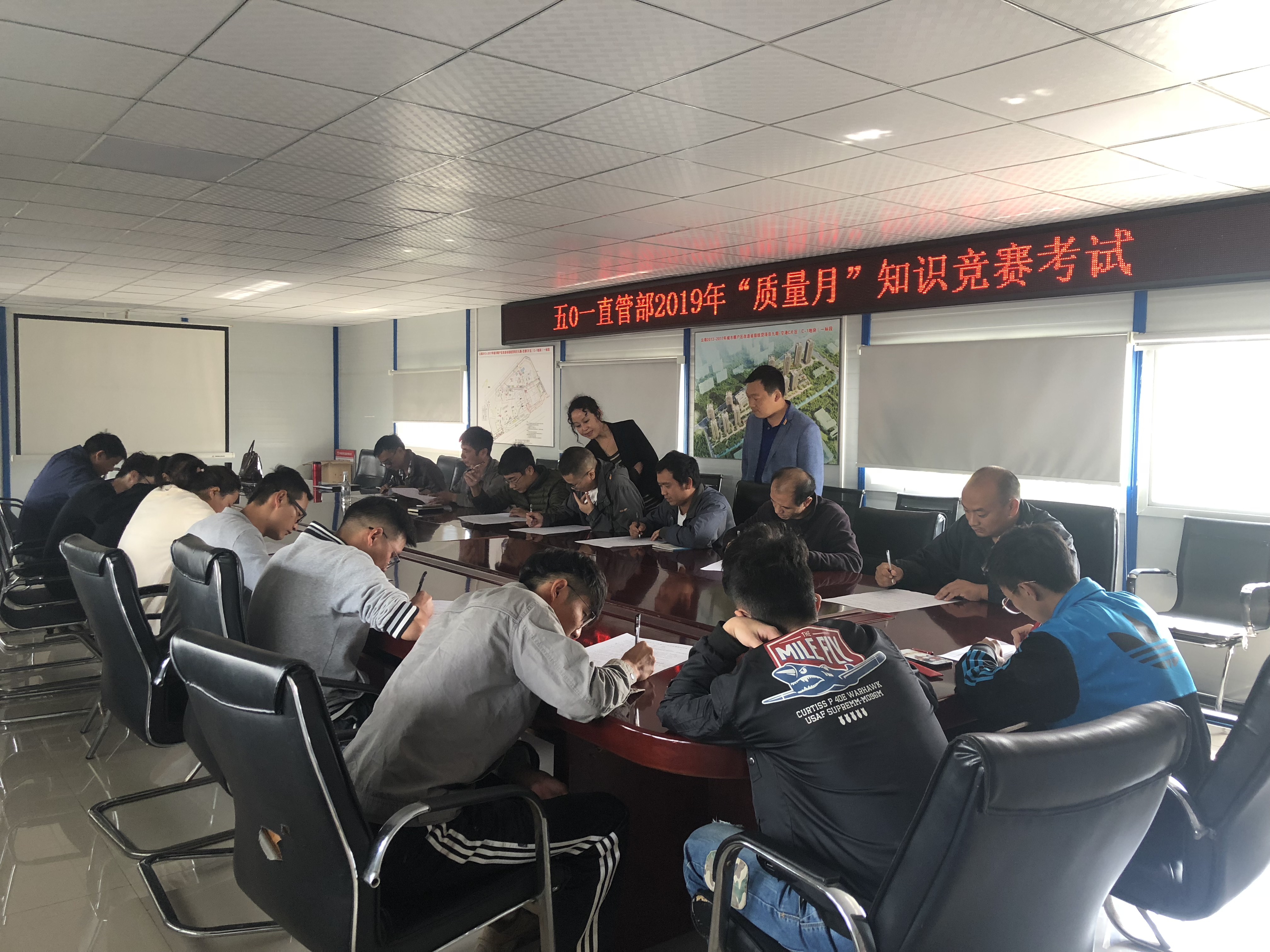 2019年質(zhì)量月期間,五一直管部為著力營造“企業(yè)追求質(zhì)量,人人關(guān)注質(zhì)量”的濃厚氛圍,組織在綠色能源產(chǎn)業(yè)園建設(shè)項目、空港經(jīng)濟區(qū)大板橋集鎮(zhèn)C片區(qū) 一標(biāo)段項目、昭通省耕塘安置點項目舉行了“質(zhì)量月”知識競賽,由直管部主任工程師(生產(chǎn)副經(jīng)理)肖本風(fēng)主持。 競賽主要以筆試為主,題目涵蓋集團(tuán)、公司下發(fā)的質(zhì)量管理文件,集團(tuán)22條禁令、公司在建項目形象建設(shè)管理、公司房建版塊(9項)質(zhì)量專項治理、公…
