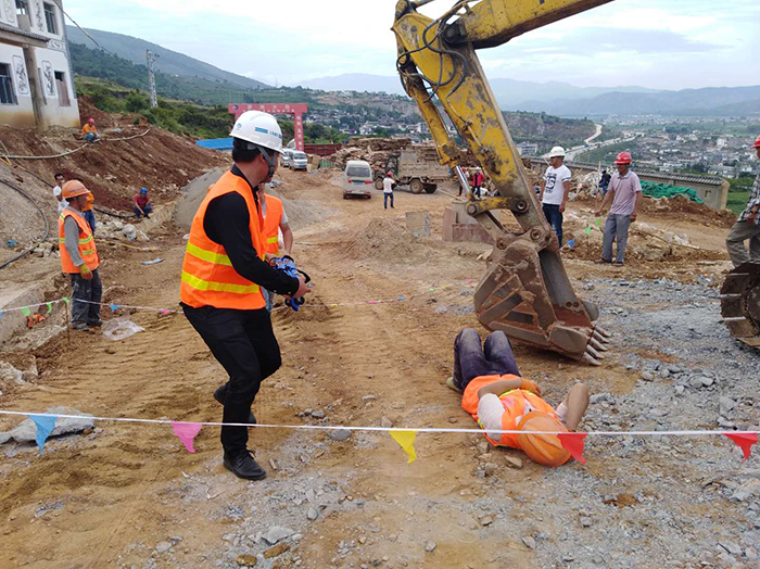 6月26日,直九部在大理市上關(guān)水廠項(xiàng)目部組織開展施工現(xiàn)場機(jī)械傷害應(yīng)急救援演練,項(xiàng)目部管理人員及班組成員共20人參與演練,直管部經(jīng)理王家書及直管部安全總監(jiān)王松濤對(duì)演練過程進(jìn)行指導(dǎo)。 上午8:00,班組班前活動(dòng)結(jié)束,班組演練人員就位,配合挖機(jī)進(jìn)行路基清土。8:10,一名作業(yè)人員模擬不慎被挖機(jī)機(jī)械臂回轉(zhuǎn)碰撞倒地,現(xiàn)場管理人員立即將事故情況報(bào)告項(xiàng)目經(jīng)理,項(xiàng)目經(jīng)理即宣布啟動(dòng)應(yīng)...