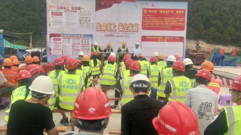 為響應(yīng)公司2018年關(guān)于加強(qiáng)安全生產(chǎn)工作的決策部署,6月4日下午,彌玉高速象山試驗(yàn)段在甸基壩大橋梁場(chǎng)召開(kāi)以“生命至上,安全發(fā)展”為主題的2018年安全生產(chǎn)月啟動(dòng)儀式。 本次啟動(dòng)儀式由項(xiàng)目部安全總監(jiān)主持,參加人員除了項(xiàng)目部所有管理人員和各施工隊(duì)負(fù)責(zé)人以外,還包括云南彌玉高速公路投資開(kāi)發(fā)有限公司及監(jiān)理公司安全部的相關(guān)負(fù)責(zé)人。 本次安全生產(chǎn)月活動(dòng)緊緊圍繞“生命至上,安全發(fā)展...
