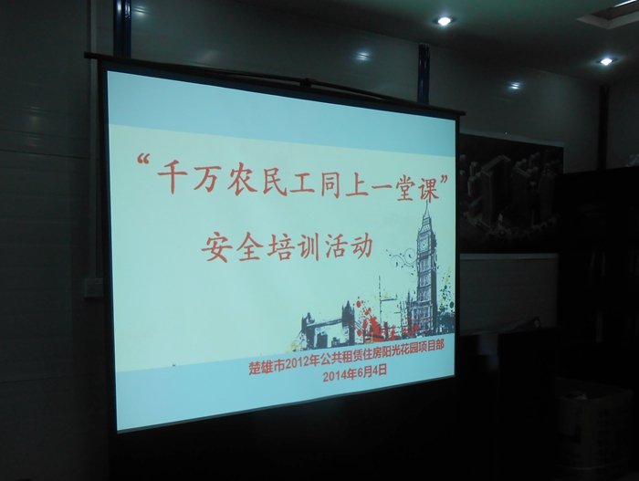為增強(qiáng)勞務(wù)工人安全生產(chǎn)意識(shí)、提高安全操作水平。6月4日,楚雄市2012年公共租賃住房-陽光花園小區(qū)“千萬農(nóng)民工同上一堂課”安全培訓(xùn)活動(dòng)正式拉開序幕。項(xiàng)目經(jīng)理張學(xué)坤為培訓(xùn)作動(dòng)員講話。 培訓(xùn)主要以視頻教學(xué)為主,觀看視頻結(jié)合本項(xiàng)目實(shí)際,組織專業(yè)技術(shù)人員對(duì)勞務(wù)工人進(jìn)行建筑安全生產(chǎn)法律法規(guī)、基本常識(shí)、操作規(guī)程、隱患辨識(shí)、安全設(shè)施和個(gè)...